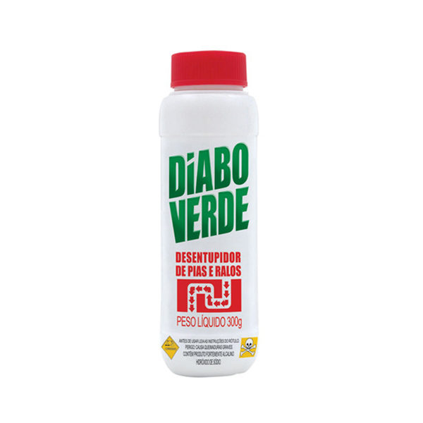 Desincrustante alcalino, o Diabo Verde tem alto poder de desentupimento, eficaz para pias, ralos e vasos sanitários, o que evita a necessidade de contratar especialistas encanadores para casos de baixa e média complexidade.